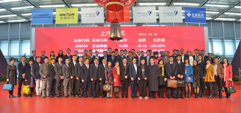 2014年12月31日上午,廣東正業(yè)科技股份有限公司(以下簡(jiǎn)稱“正業(yè)科技”)在深交所A股上市。30日晚,公司在中國(guó)最具發(fā)展?jié)摿Φ母咝录夹g(shù)產(chǎn)業(yè)開發(fā)區(qū)——東莞松山湖高新技術(shù)產(chǎn)業(yè)園區(qū)凱悅酒店舉辦答謝酒會(huì),來自社會(huì)各界有關(guān)部門及各中介機(jī)構(gòu)、合作伙伴的朋友們歡聚一堂、舉杯同慶,共同慶賀正業(yè)科技經(jīng)過17年的耕耘,終于收獲了成功和喜悅,成功登陸資本市場(chǎng)。