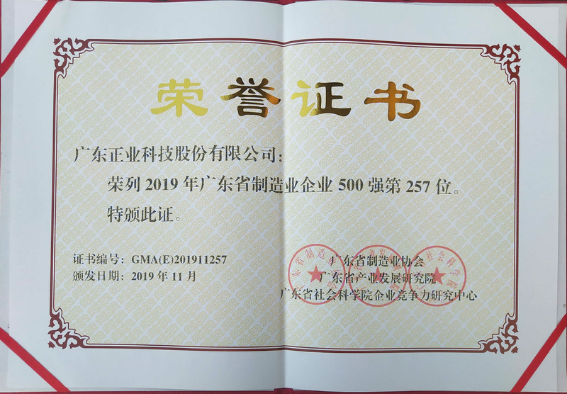 正業(yè)科技榮列“2019年廣東制造業(yè)企業(yè)500強(qiáng)”榜單,這充分彰顯了公司在制造領(lǐng)域深耕細(xì)作,所表現(xiàn)出來的卓越綜合實(shí)力和強(qiáng)大市場(chǎng)競(jìng)爭(zhēng)力。