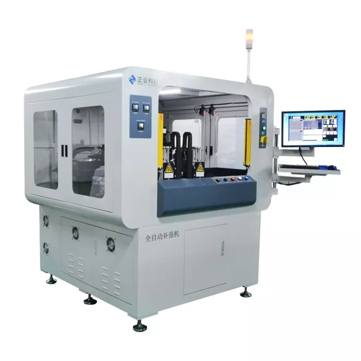 自動(dòng)補(bǔ)強(qiáng)機(jī)是正業(yè)科技研發(fā)的一款適應(yīng)于對(duì)柔性線路板貼合補(bǔ)強(qiáng)材料的技術(shù)成果,也是本次參觀活動(dòng)的明星產(chǎn)品之一。該款設(shè)備實(shí)現(xiàn)全自動(dòng)上下板,自動(dòng)放隔紙,節(jié)省人工成本,可一鍵倒入,換料號(hào)只需10分鐘,該款設(shè)備貼合精度高:±50um(高精模式),±75um(高速模式),貼片效率快:2500PCS/H(高精模式),4000PCS/H(高速模式)。