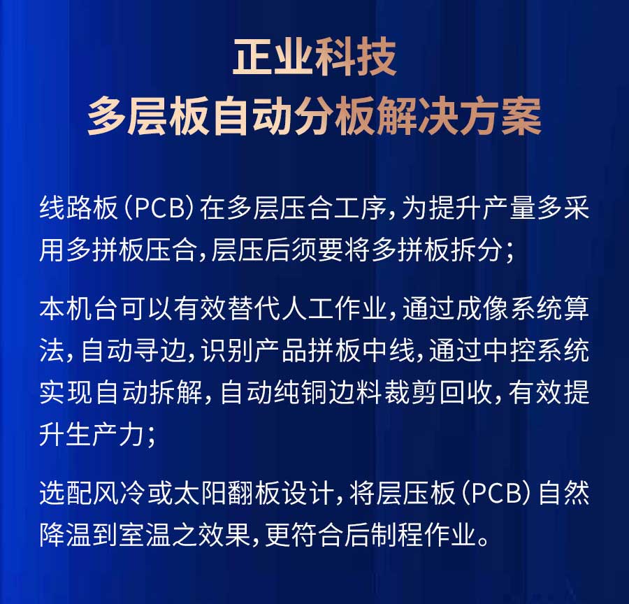 當(dāng)前位置:首頁>產(chǎn)品中心>解決方案>PCB行業(yè)>正業(yè)科技解鎖PCB生產(chǎn)新模式,高效分板線助力產(chǎn)業(yè)升級